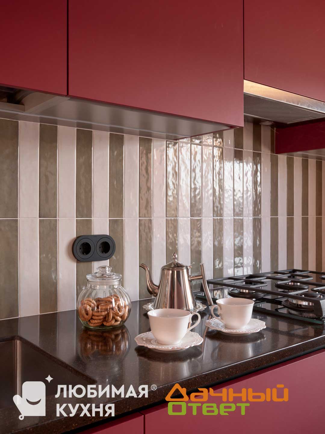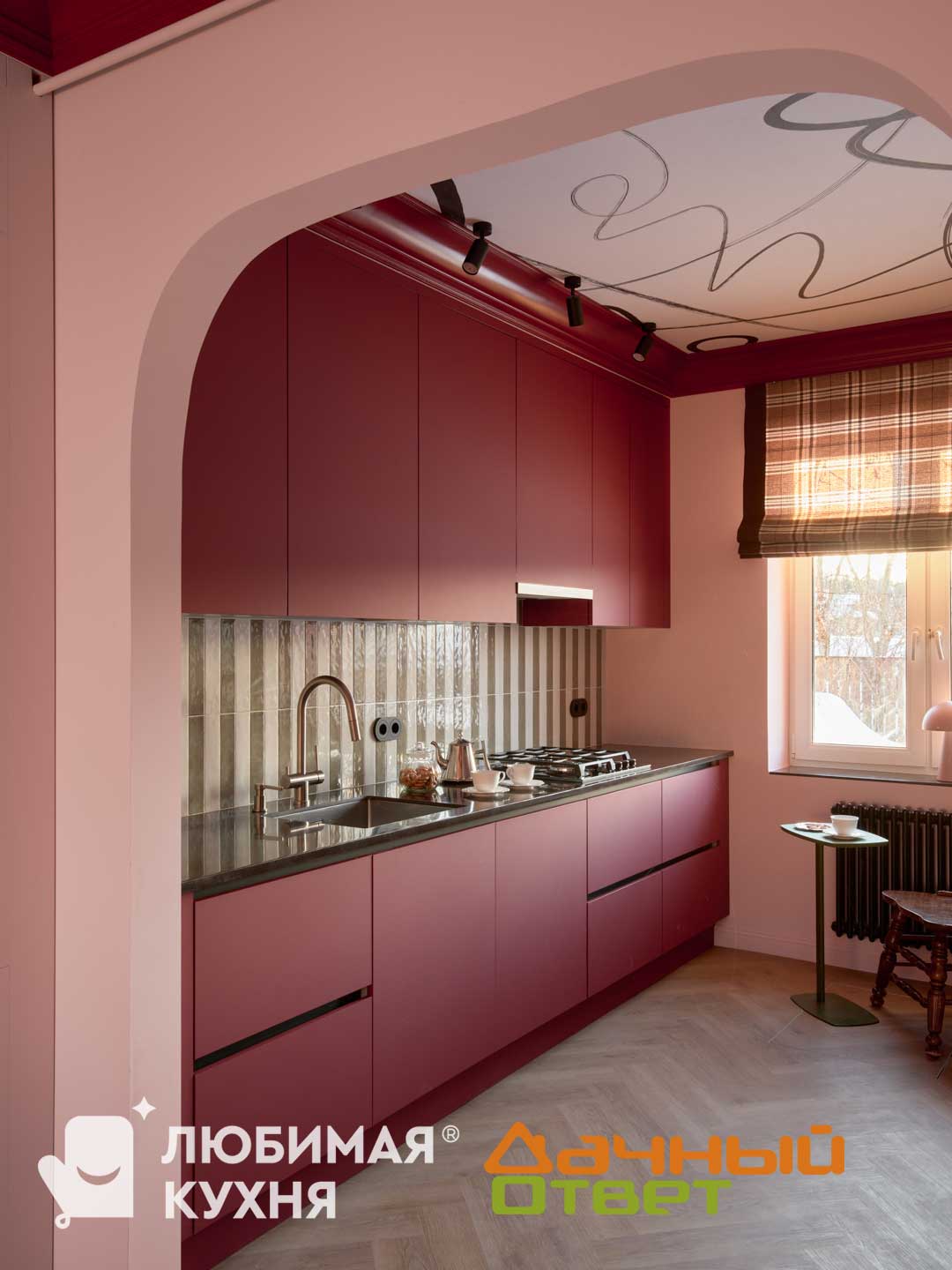кухня Slotex 0114/8Bordo, пеналы Slotex 97026/BR Satin Silver| Алюминиевая рама серебро, стекло прозрачное опти вайт, шкафы Slotex 7606/S Lotus