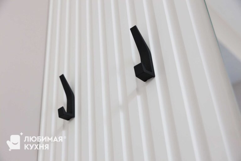 Шкаф с интересным решением — ящик как бы делит шкаф и интегрируется в него. Зеркало с подсветкой словно парит в воздухе, необычная геометрия и конфигурация шкафа сделает любой интерьер стильным! Шкаф изготовлен из практичных материалов, а внутреннее наполнение очень функционально и продумано! Шкаф из двух отделений. Первое отделение — поделено на 2 части, вверху пантограф и полки для мелких вещей, внизу выкатная брючница и полка для обуви. Выдвижной ящики под зеркалом.